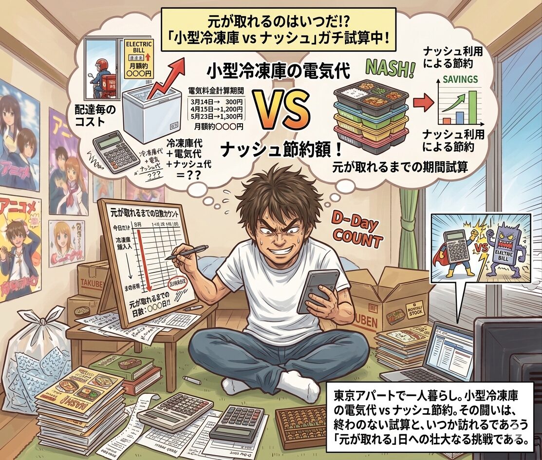 「冷凍庫を買うお金と、毎月の電気代を払ってまで、ナッシュをまとめ買いする価値はあるのか?」という疑問は非常に合理的です。しかし、結論から申し上げますと、ナッシュを日常的に利用する方であれば、半年から1年以内には十分に「元」が取れる計算になります。