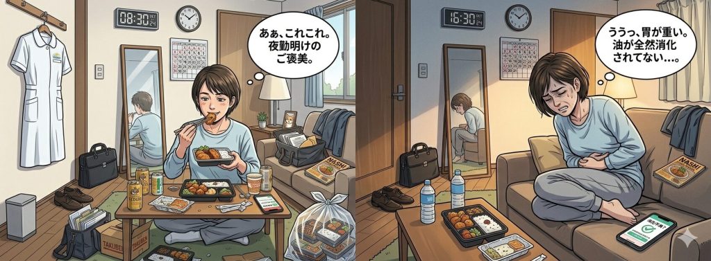 • 夜勤明けや寝る前など、胃に優しい食事を求めている